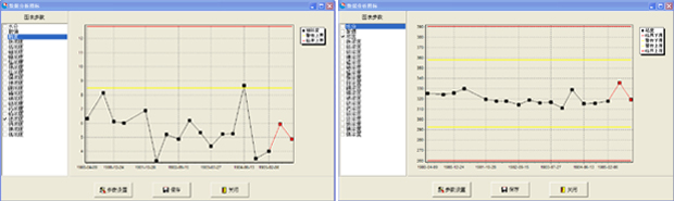 圖三:軟件的預(yù)警功能,不僅能給出當(dāng)前測試結(jié)果所處范圍,同時能夠通過模糊計(jì)算理論,給出下次樣品的數(shù)據(jù)。