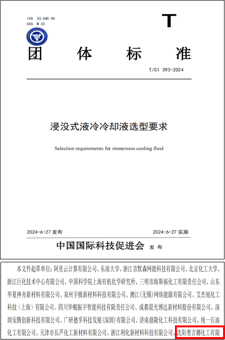 沈陽奧吉娜化工有限公司參與起草的T/CI 393-2024《浸沒式液冷冷卻液選型要求》標準于2024年6月正式發布。該標準的發布可幫助數據中心和儲能領域等設備制造企業在冷卻液選型過程中提供明確的技術要求,促進液冷技術的生態成熟和良性發展,對推動液冷行業規范化發展具有重要的指導意義。同時,這也是奧吉娜助力新能源發展的具體行動。